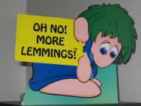 The cardboard cutouts pictured below were promotionals for Holiday Lemmings, original Lemmings and Oh No! More Lemmings. I don't know much else about them. (Click on any of them to enlarge)